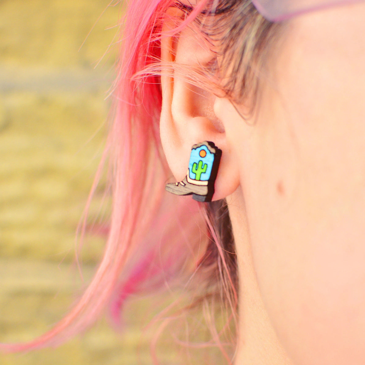 Saddle up your style – grab these miniature cowboy boots for your ears.
