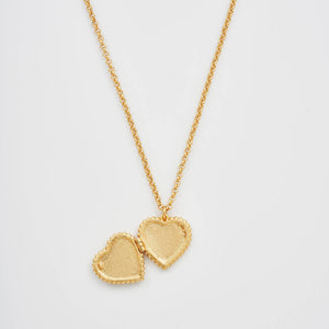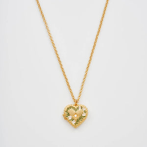 This gold heart locket is finished in 22ct worn gold plating, with hand-painted enamel lilies and a single faux pearl detail at the centre. It opens on a working hinge to keep a photo or tiny keepsake close - and it layers beautifully with our necklaces.