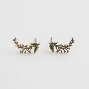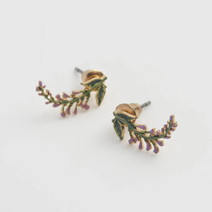 Embrace the beauty of an English country garden with the Fable England Lavender Stud Earrings. Delicately hand-painted in soft purple and green enamel, these exquisite studs bring the timeless charm of lavender to your jewellery collection. Crafted with 22ct worn gold plating, the intricate botanical design curves gently along your earlobes, adding a graceful floral touch to any outfit.