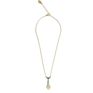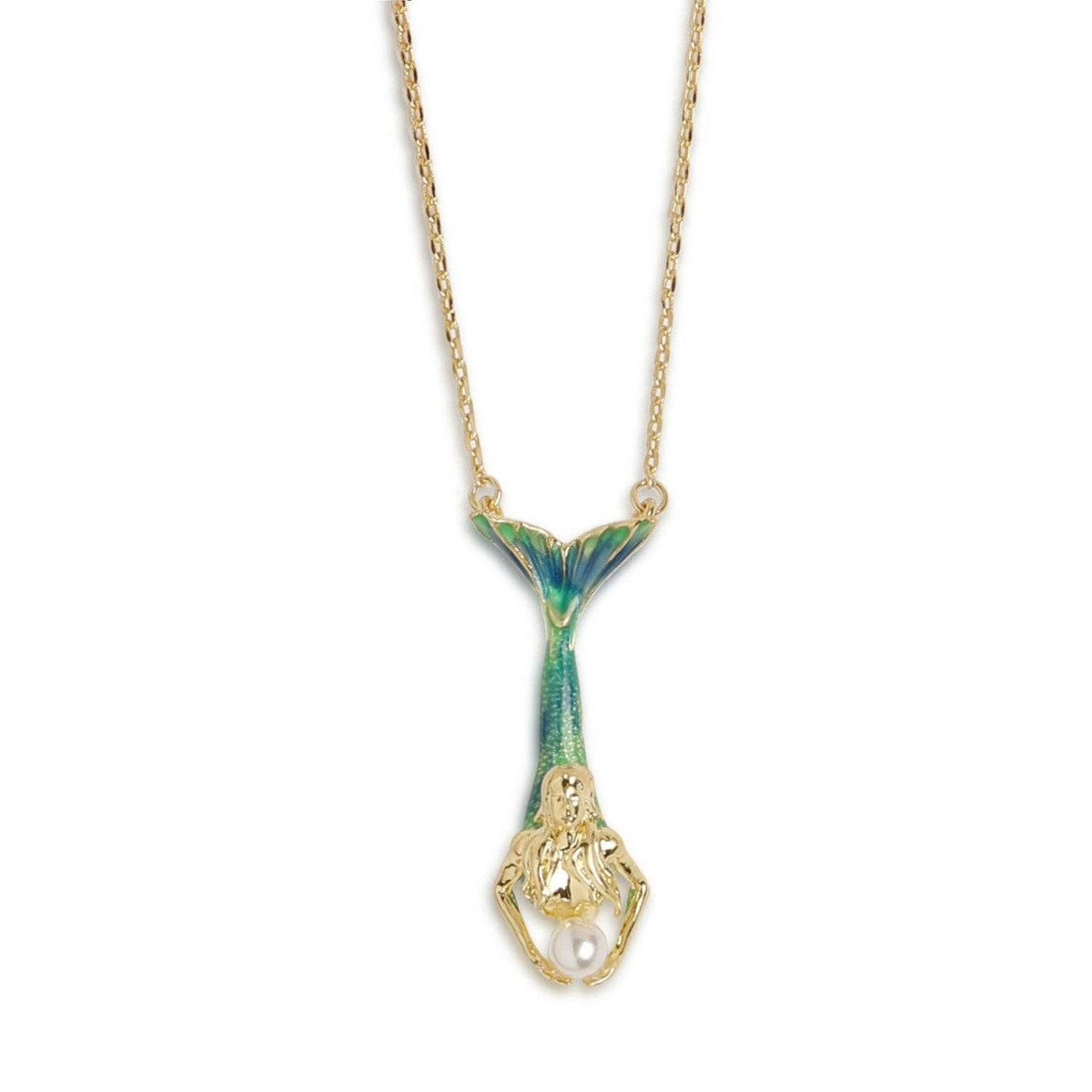 Hand-enamelled in shimmering sea tones and finished in radiant gold, this pendant captures the mythical beauty of the mermaid with captivating detail.