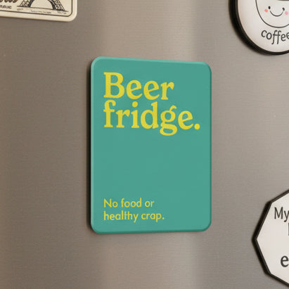 This brilliantly bold fridge magnet says what every beer lover is thinking - your fridge has one job, and it is not storing salad. With its eye-catching teal design and playful typography, it makes the perfect little gift for anyone who takes their beer seriously (and their greens, not so much).