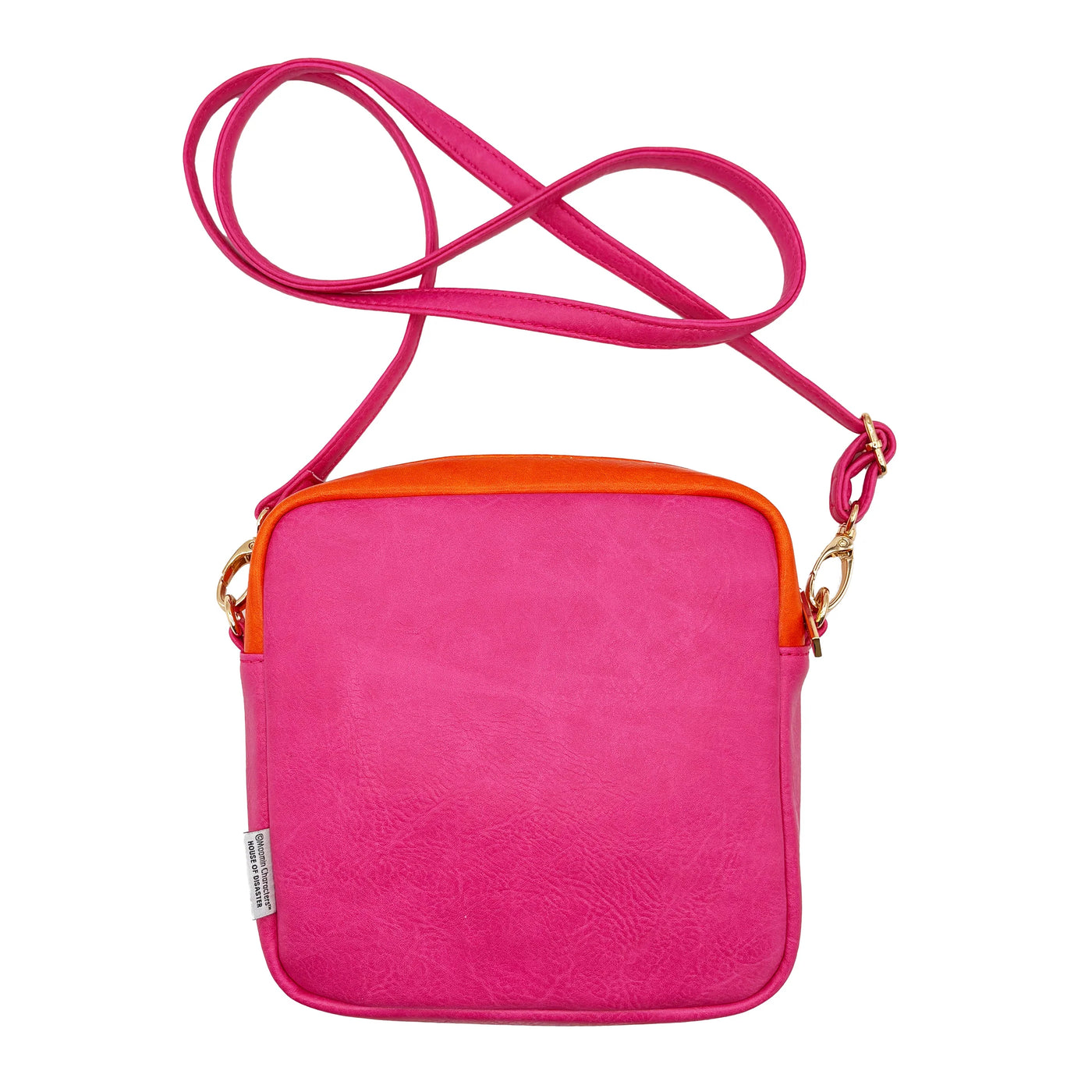 Crafted from soft vegan leather in vibrant blocks of orange, hot pink, and silver, it features the ever-charming Snorkmaiden peeking out with her signature grace. The adjustable strap makes it easy to wear crossbody or on the shoulder, while the roomy interior keeps your essentials in check.