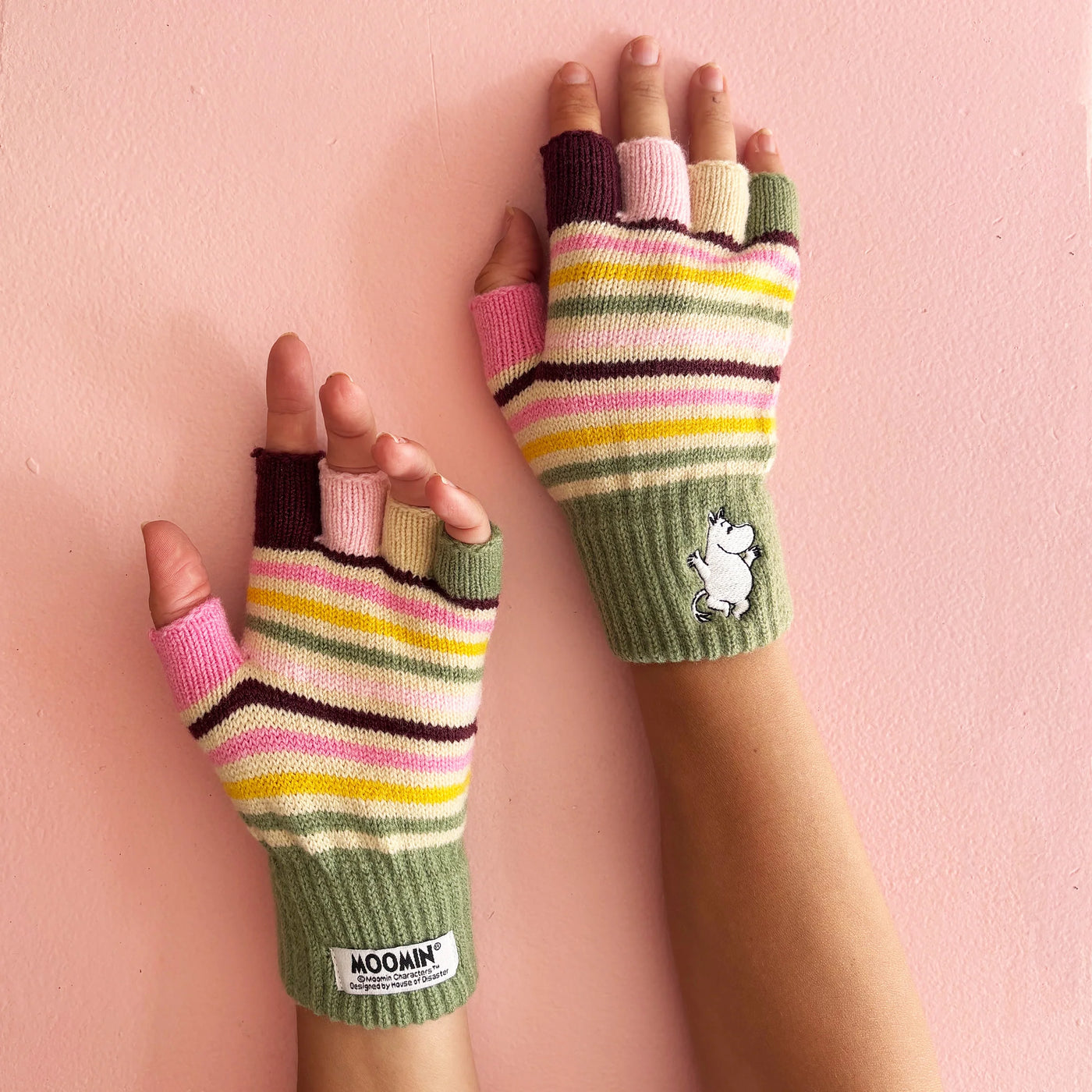 Add a dash of colour and charm to your winter wardrobe with our Moomin Stripy Fingerless Gloves. Featuring a playful mix of pastel and berry-toned stripes, each glove is finished with a sweet embroidered Moomin for a touch of Nordic nostalgia.