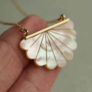 Add a touch of vintage sophistication to your look with the Mother of Pearl Scallop Necklace – shop now!