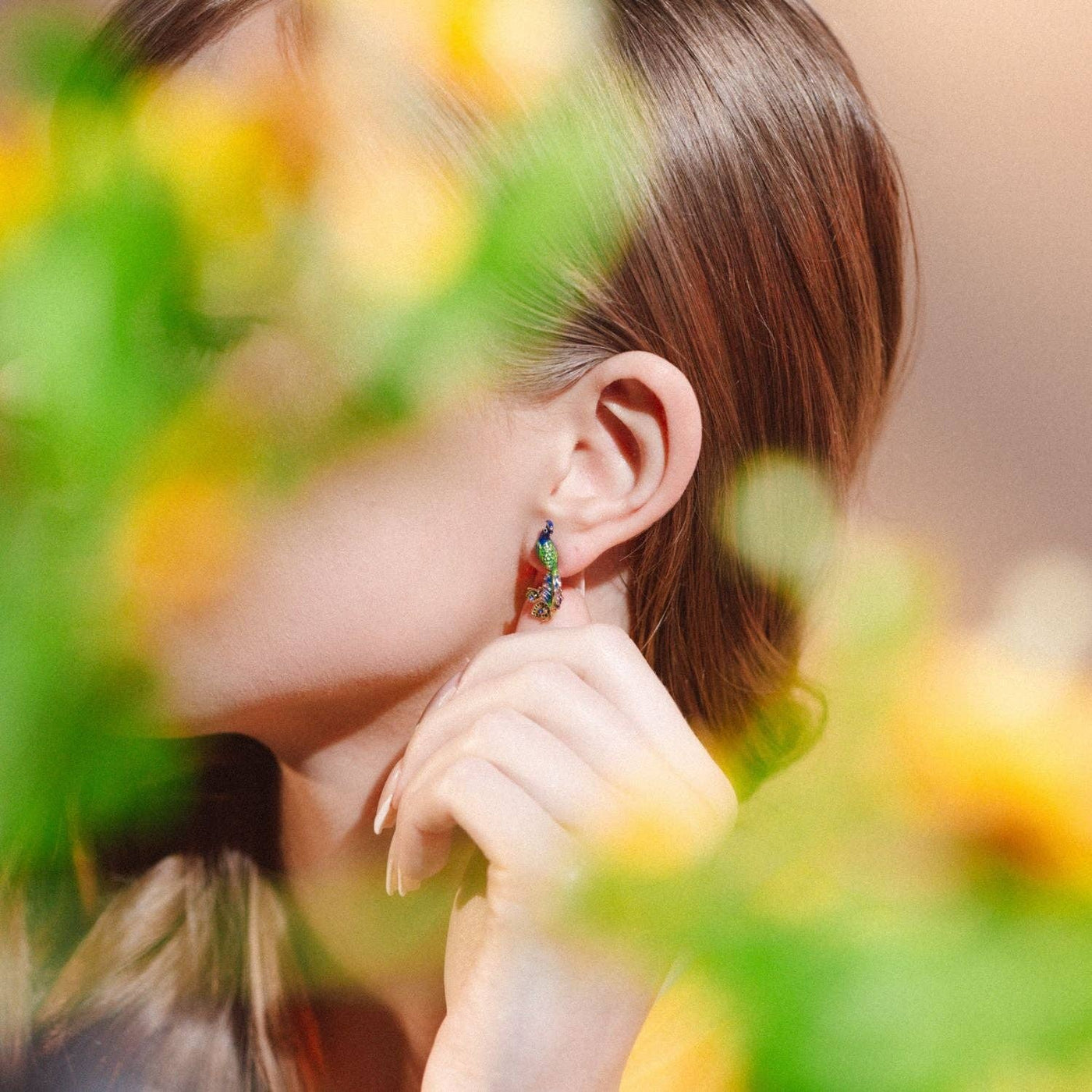 Strut your stuff with these magnificent peacock studs - feathered glamour for your ears.