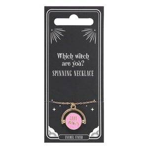 Sometimes you’re a good witch, sometimes…not so much. This playful spinning necklace lets you show off both sides, with a reversible enamel charm that flips between “Good Witch” in pink and “Bad Witch” in green. Finished with a delicate gold-tone chain, it’s the perfect accessory for embracing your mood (or warning others of it).